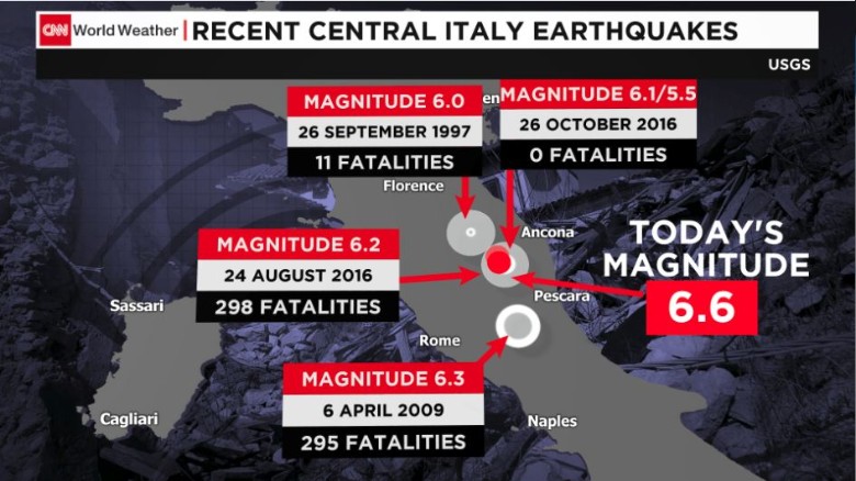 A quake with a magnitude of 6.2 struck Italy in the early hours of Wednesday morning. Italy’s civil protection agency described the quake as “severe”, and several deaths have been reported..